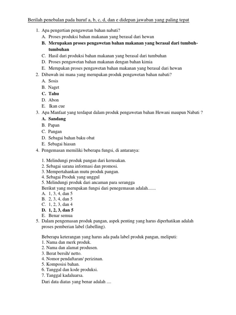 Latihan soal pilihan ganda bab pengolahan dan kewirausahaan bahan nabati, hewani menjadi makanan internasional 1. Bahan makanan yang berasal dari nabati adalah? Seperti yang kita ketahui pengolahan ada pengolahan makanan awetan dan bahan nabati, jadi apa yang dimaksud dengan pengolahan? Makanan yang diolah di suatu daerah. Soal soal sistem pengolahan makanan awetan dari bahan hewani.