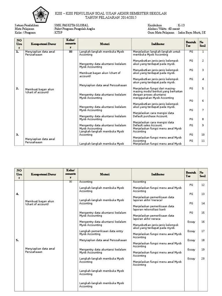 Kepada siswa kelas xii akuntansi smk 1 pati yang belum mengikuti ulangan mata pelajaran komputer akuntansi wajib mengikuti ulangan susulan dengan ketentuan sebagai berikut: Nov 29, 2011 · soal ulangan myob kelas xii akuntansi. Myob merupakan aplikasi akuntansi terpadu 7. Cara mengerjakan myob pt cahaya guru ilmu sosial. Pada kali ini, kami akan membagikan lagi soal mata pelajaran komputer akuntansi, atau sering disingkat kompak, yang mana dipelajari di smk kompetensi keahlian akuntansi dan keuangan lembaga (akl).