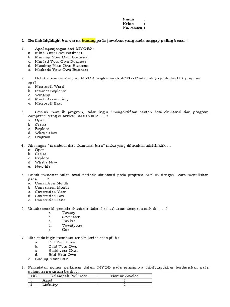 Doc soal soal pilihan ganda myob beserta jawabannya fina dwinuriyani academia edu.