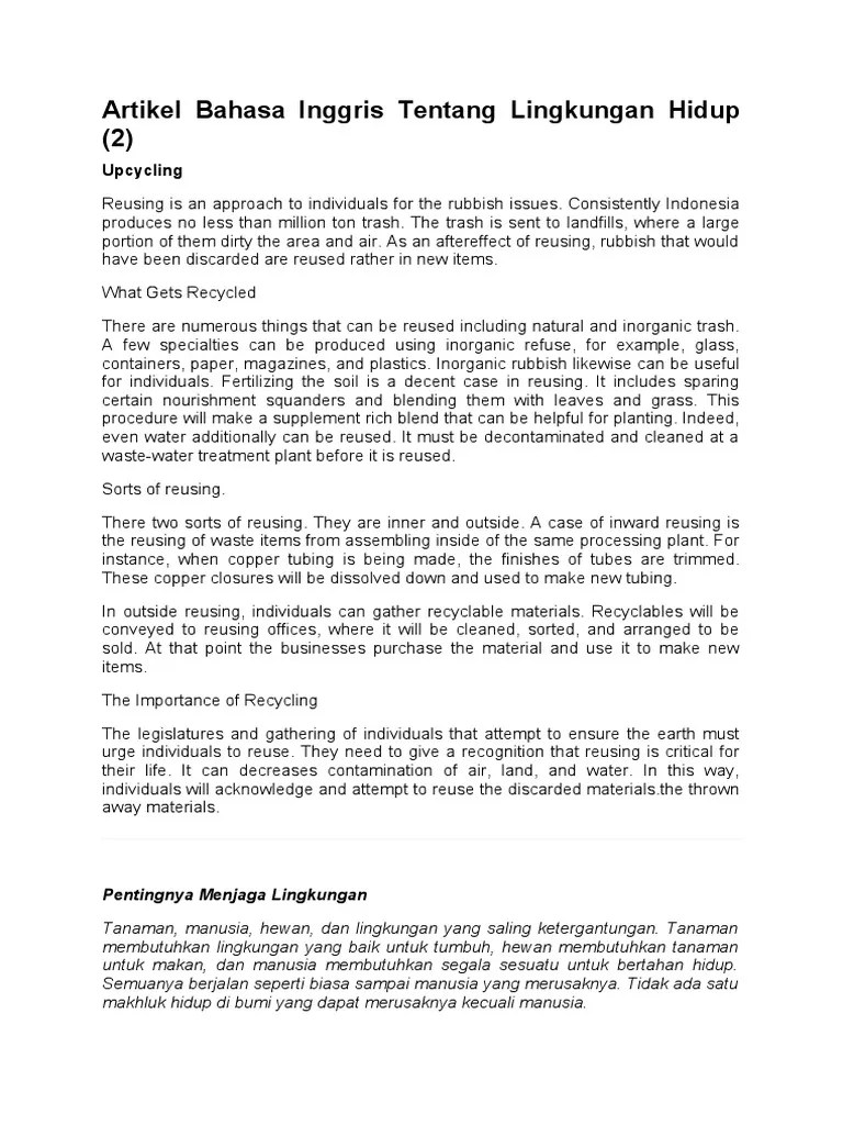 The trash is sent to landfills, . Consistently indonesia produces no less than million ton trash. Berikut adalah contoh artikel in english, ini . Berikut ini contoh artikel berbahasa inggris. Sebelum mulai membahas mengenai tips dan cara menulis artikel bahasa inggris yang baik, mari kita bahas terlebih dahulu mengenai apa yang dimaksud dengan. It has been scientifically proven that the . Reusing is an approach to individuals for the rubbish issues. Contoh artikel bahasa inggris, contoh cerita bahasa inggris , artikel inggris, cerita inggris, 1208 contoh cerita bahasa inggris. Sekolahbahasainggris.com contoh artikel bahasa inggris tentang kebudayaan indonesia dan artinya 10/08/2019 · 2 min rea. Beragam bentuk contoh artikel bahasa inggris dengan beragam tema bisa membantu seseorang yang ingin mulai belajar menulis artikel.
